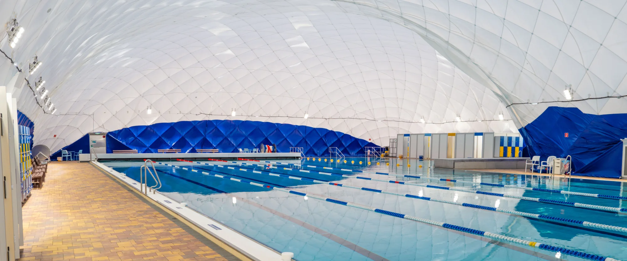 Dank ihrer hochwertigen Ausstattung und Flexibilität bieten unsere Schwimmbeckenüberdachungen nicht nur eine Trainingsmöglichkeit für Vereine ohne Einschränkung des Publikumsverkehrs. Sie sind außerdem eine optimale Übergangslösung während der Sanierung von Hallenbädern.